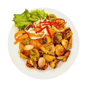Served with Vegetable Fried rice, Sautéed Vegetables & Butter lemon curry sauce